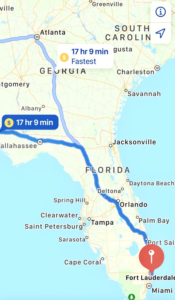 Google maps says it’s 17 hours and 9 minutes to Ft.Lauderdale, aka the S/V Bilancia, but we all know that IS A LIE. I’m just going to double that time….I’m planning on spending two nights on the way down, possibly three if this mama needs a break. Assuming that I drive about 10 hours a day, I’m hoping to make it there sometime on the night of the 9th. Depending on the arrival time, we may spend an additional night. Since arrival will be pick-up by dingy Alfonz.